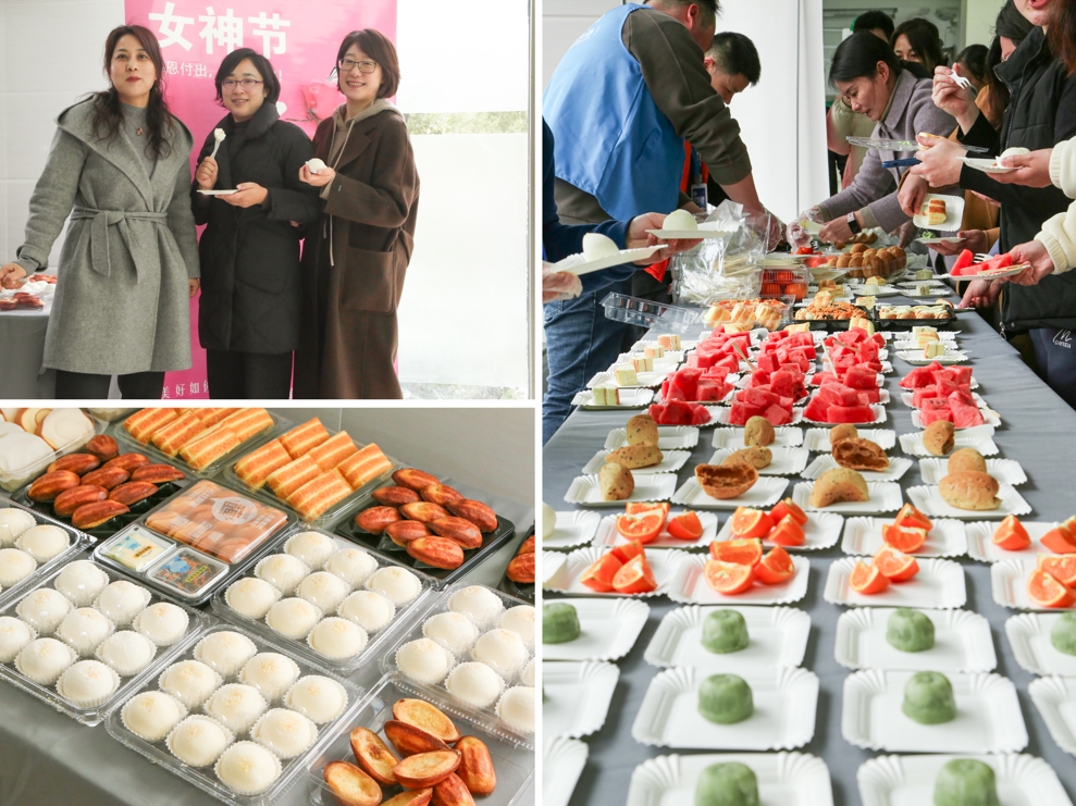 不被世俗定义,绽放独特光芒——致敬每一位女性为庆祝国际“三八”妇女节115周年,充分展现对女性员工的关怀与尊重,3月7日上午,建工产业、江苏省房联合盒马超市,在员工食堂举办了以“感恩付出,感谢有你”为主题的茶点专场活动。此次活动旨在致敬每一位女性,鼓励她们勇敢追求自我,展现独特风采。 活动当天上午10点,员工食堂内布置得温馨而雅致,精美的茶点、新鲜的水果和各式各样的甜品整齐摆放,香气四溢。盒马超市特别为此次活动准备了丰富的茶点,吸引了众多员工前来品鉴。大家一边享用美食,一边轻松交谈,现场气氛热烈而愉悦。 本次活动不仅为女性员工提供了放松身心的机会,更通过精心的布置和贴心的服务,传递了对女性员工的尊重与关爱。许多女员工在现场拍照留念,记录下这美好的时刻,并在社交平台上分享了这份节日的喜悦。活动不仅让女性员工感受到节日的温暖,也进一步增强了团队的凝聚力和归属感。 通过此次活动,再次展现了企业对女性员工的重视与关怀。未来,企业将继续致力于为员工创造更加平等、包容的工作环境,助力每一位员工在工作中实现自我价值,绽放独特光芒。